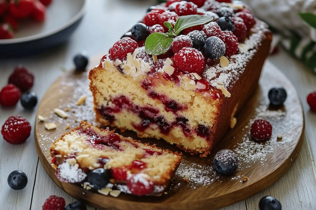 Picture the moment you slice the loaf: the crumb is light, airy, and yet packed with a buttery, nutty richness that makes your mouth water. The scent of toasted almonds and sweet cherry jam rises like a fragrant cloud, while the buttery crust shimmers with a golden sheen. The texture is a paradox—soft inside, yet the flaked almonds on top crackle with each bite, adding a delightful crunch. The flavors mingle: the subtle almond extract deepens the nutty undertone, the cherry jam provides a tart sweetness that balances the sweetness of the sugar, and the butter keeps everything silky. Every bite feels like a memory of a Sunday afternoon, complete with a steaming cup of tea.
