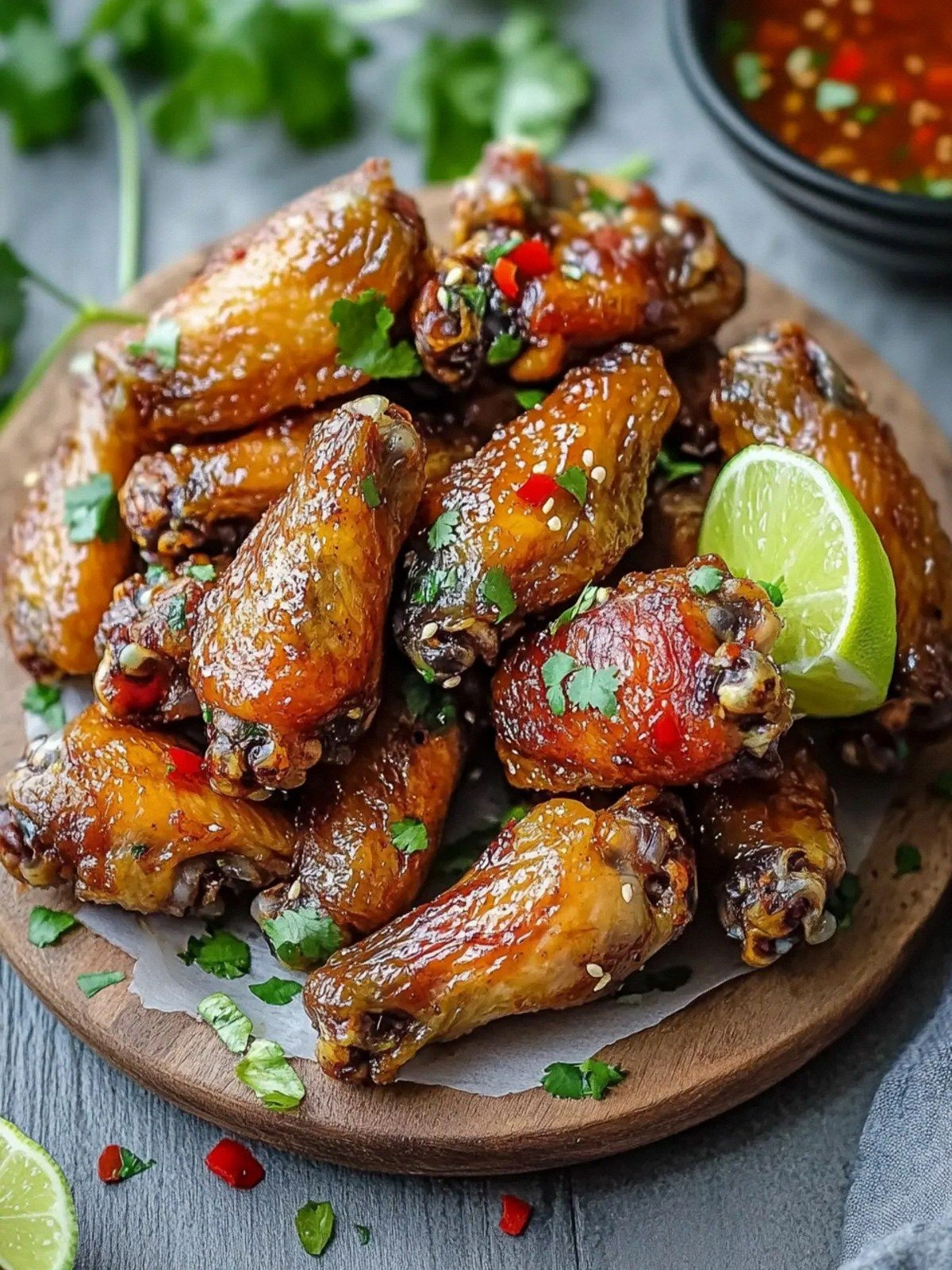 The optional garnishes—such as chopped scallions, toasted sesame seeds, or a sprinkle of crushed chili flakes—add visual appeal and a burst of fresh flavor. They’re not essential to the core recipe, but they elevate the dish to a restaurant‑quality presentation. If you’re aiming for a more traditional feel, simply serve the wings with lime wedges and a small bowl of fish sauce for dipping.