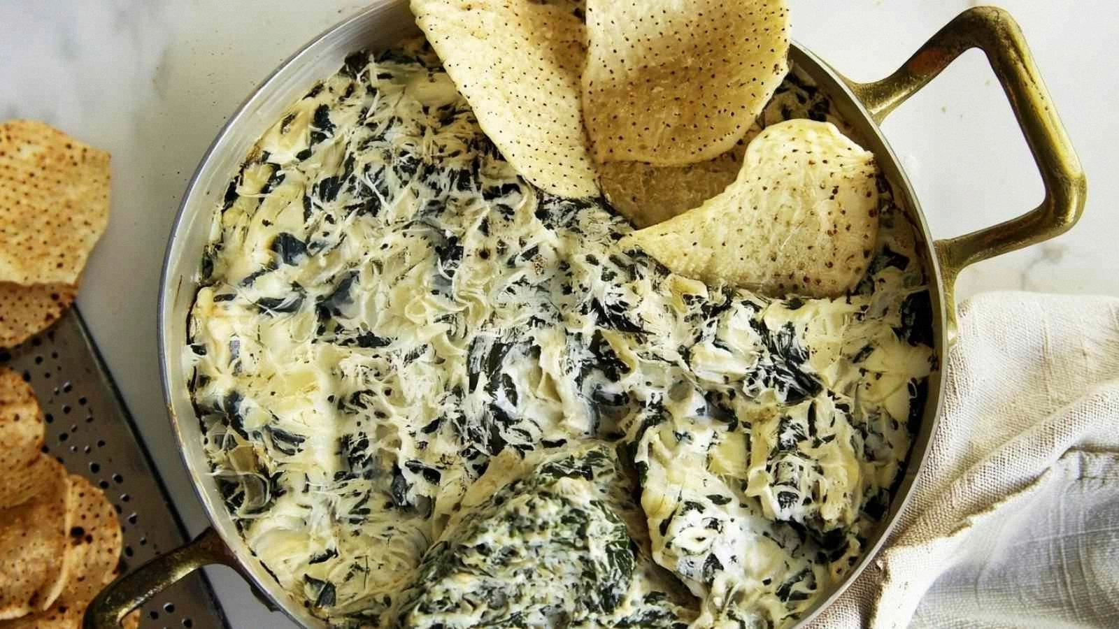 Frozen chopped spinach is the workhorse that brings color and nutrients. When heated, it releases water that melds with the cheeses, creating a luscious base. The 14‑oz artichoke hearts add a chewy, almost crunchy bite that contrasts beautifully with the smoothness. If you can’t find artichokes, roasted cauliflower florets will offer a similar texture and a slightly nuttier flavor.