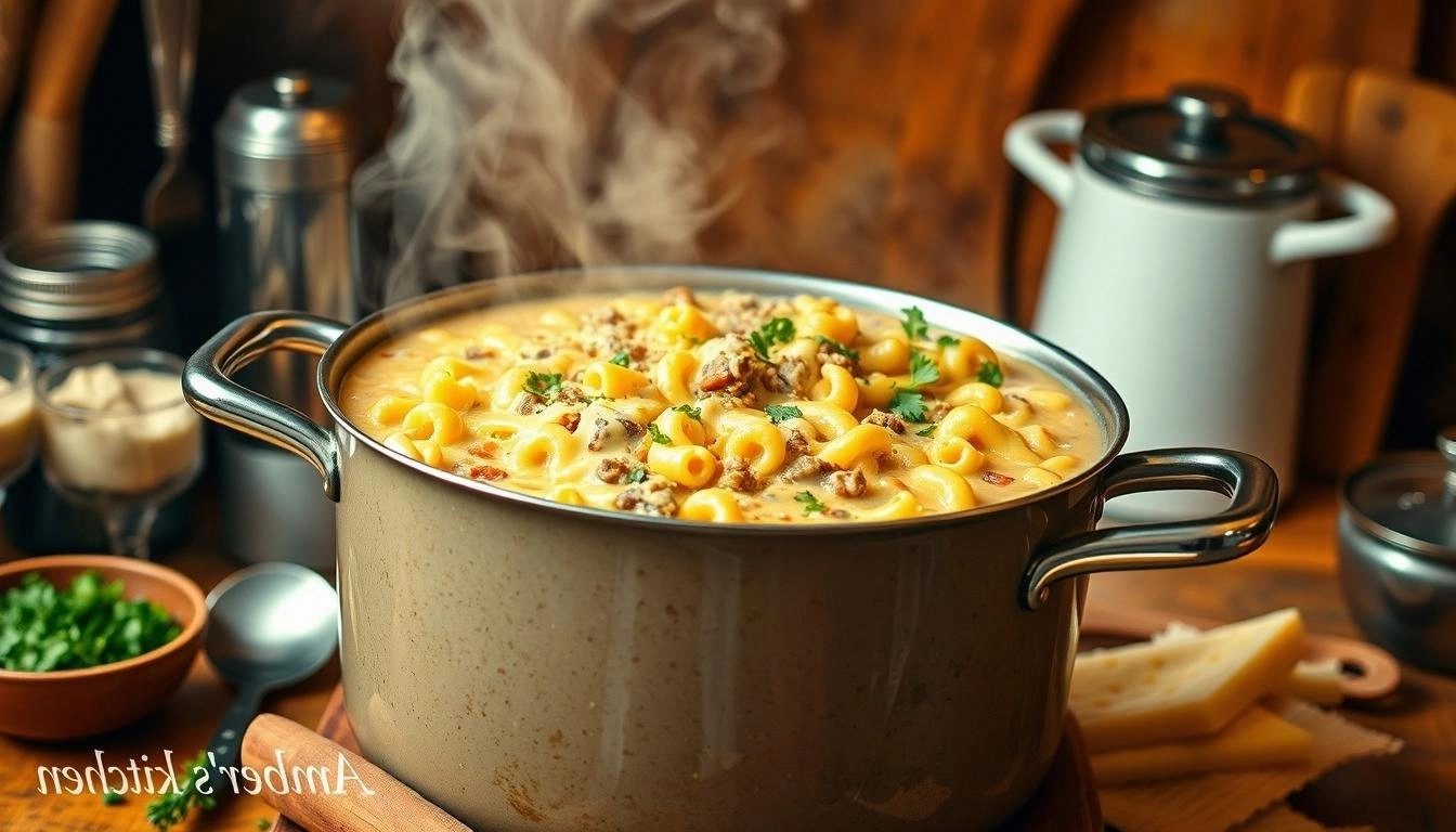 What sets this version apart is the deliberate layering of flavors and textures that mimic a cheeseburger in a single, easy pot. The beef isn’t just cooked; it’s browned to a caramelized depth that delivers a meaty umami punch. The mirepoix is diced finely to dissolve into the broth, creating a subtle sweetness that balances the savory notes. The addition of a roux made from flour and butter thickens the sauce into a silky custard that coats each noodle. Finally, the sharp cheddar melts into the mixture, turning the entire dish into a molten, gooey dream that feels like a burger in every bite.