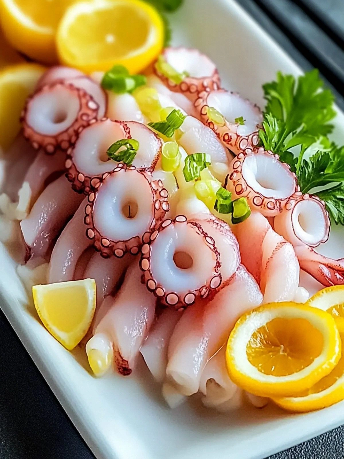 - Step 4: Plate the Octopus. Arrange the sliced octopus on a chilled plate in a fan shape. The fan layout not only looks elegant but also allows each slice to be coated evenly with sauce. If you’re serving a crowd, you can stack a few layers for a dramatic effect. The presentation is key; it makes the dish feel like a sushi bar experience.