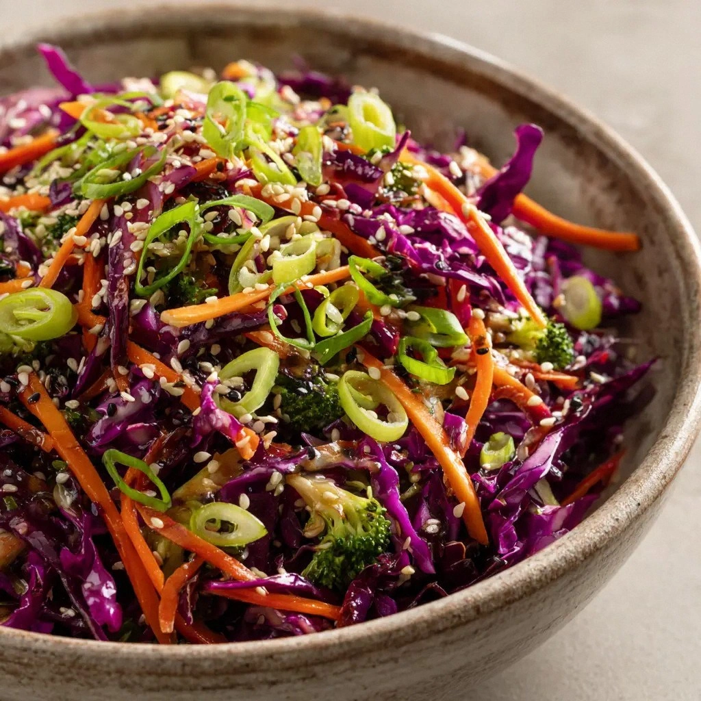I was standing in my kitchen, staring at a pile of wilted cabbage, when my friend shouted, “You need a salad that can double as a side and a main.” I laughed, knowing that the answer would be a rainbow of crunch and umami. I pulled out a bag of purple cabbage, a bag of green, carrots, and a head of broccoli. The moment I sliced the cabbage, the air filled with a crisp, earthy scent that made my mouth water. That was the moment I knew this recipe would be legendary.
